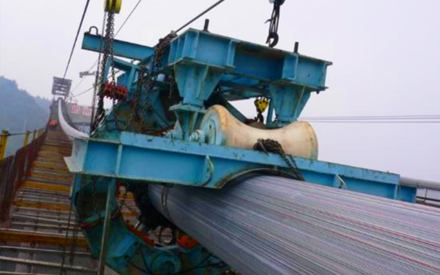 主纜纏絲機(jī)、緊纜機(jī)(滿足各類主纜直徑),纜索吊、張拉專用設(shè)備、吊裝門架、貓道等施工平臺設(shè)計制造。