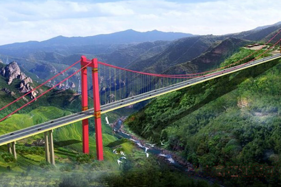 江底河大橋?yàn)殡p塔單跨鋼箱梁懸索橋,主跨920m。...