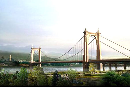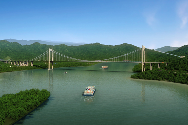 大沙水道橋為主跨1200米雙塔單跨鋼箱梁懸索橋。...